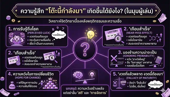 ความรู้สึกนี้ไม่ได้เกิดจากความบังเอิญล้วน ๆ อย่างเดียว มันเกิดจากหลายอย่างรวมกัน ทั้งการตีความผลลัพธ์ อารมณ์ตอนเล่น และพฤติกรรมของคนรอบตัว ที่ทำให้สมองเราเชื่อว่ามี “จังหวะ” บางอย่างกำลังเกิดขึ้น ทั้งที่จริงมันอาจเป็นแค่ช่วงสั้น ๆ ของความสุ่ม
